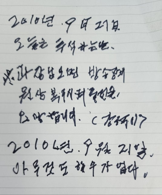 두 분 다 계시지 않는 어버이날을, 객지에서 홀로 보내며 묵은 상자들을 정리하다 만난 아버지의 첫 투석일지, 2010년 9월부터 앞으로 7년을 그렇게 애쓰시다 떠난 아버지의 일지를 몇 장 건졌다.