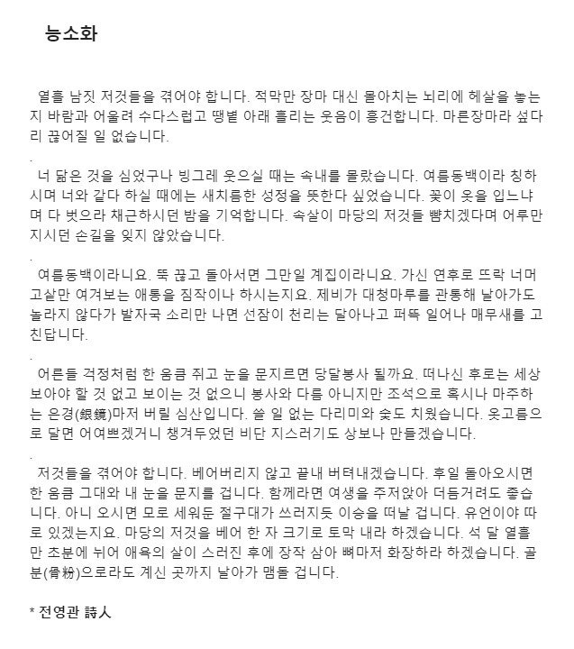저이들이 나와 홰나무와 능소화를 홀홀 접어서